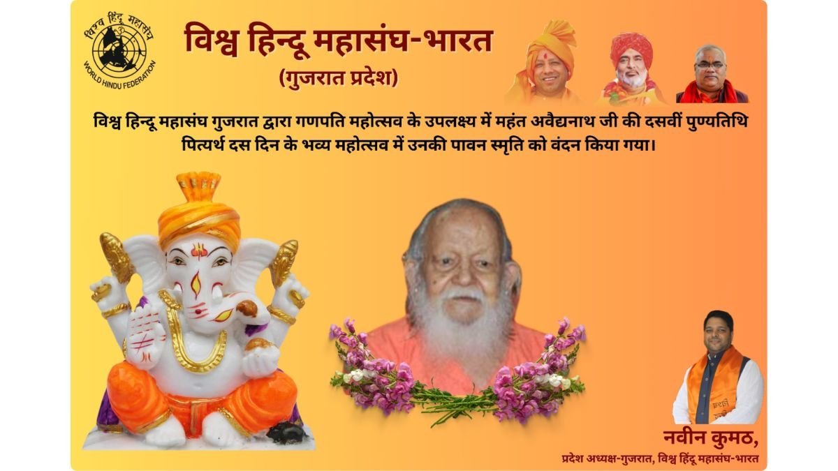 VHM गुजरात ने गणपति महोत्सव पर महंत अवैद्यनाथ जी की दसवीं पुण्यतिथि पर श्रद्धांजलि अर्पित की